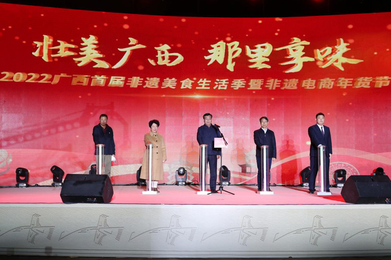 人民网南宁12月31日电 (记者朱晓玲)12月30日,由广西文化和旅游厅主办的“壮美广西 那里享味”2022广西首届非遗美食生活季暨非遗电商年货节在南宁市五象湖公园开幕。