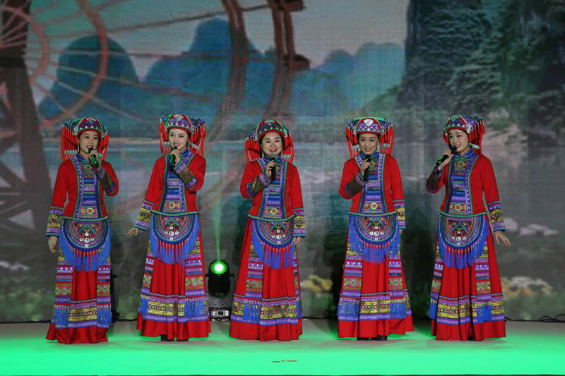 开幕式艺术展演以“源、和、兴、庆”作为四大篇章,全景式地展现了八桂文化的历史根脉。曲艺演唱《瑶歌一唱亲上亲》、舞蹈《连就连》……一个个精彩节目令观众切身感受到了广西非遗的独特魅力。