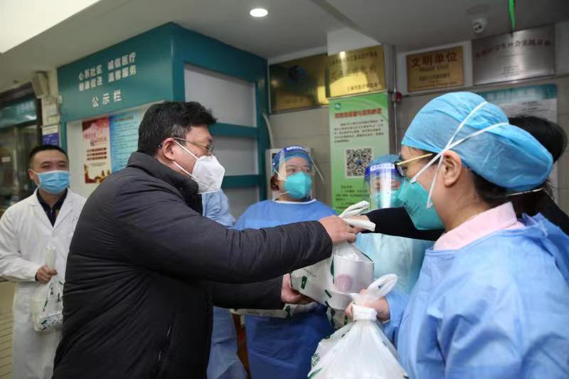 当天下午,曹炯、张辉走访慰问了五里桥街道社区卫生服务中心一线医务人员、中二居民区第二梯队代表、瞿南居民区志愿者团队、物业工作人员、疫情期间提供清真食品的麦迪娜民族餐厅、桑城商铺自管会党员骨干项勇飞(雅丽洗衣店)和济家护理站(长护险护理站)的阿姨们,他们是在社区各个方面做出积极贡献的一线工作者代表,感谢他们为社区的付出,希望他们能在新的一年里将温暖传递给更多的人。