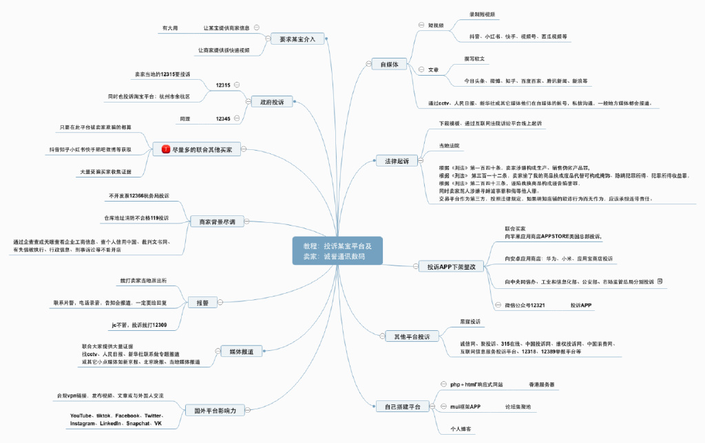 下面是小编整理的维权步骤的思维脑图,以某宝为例其它电商平台也可操作,如果怕以后维权时候找不到请保存收藏下来。
