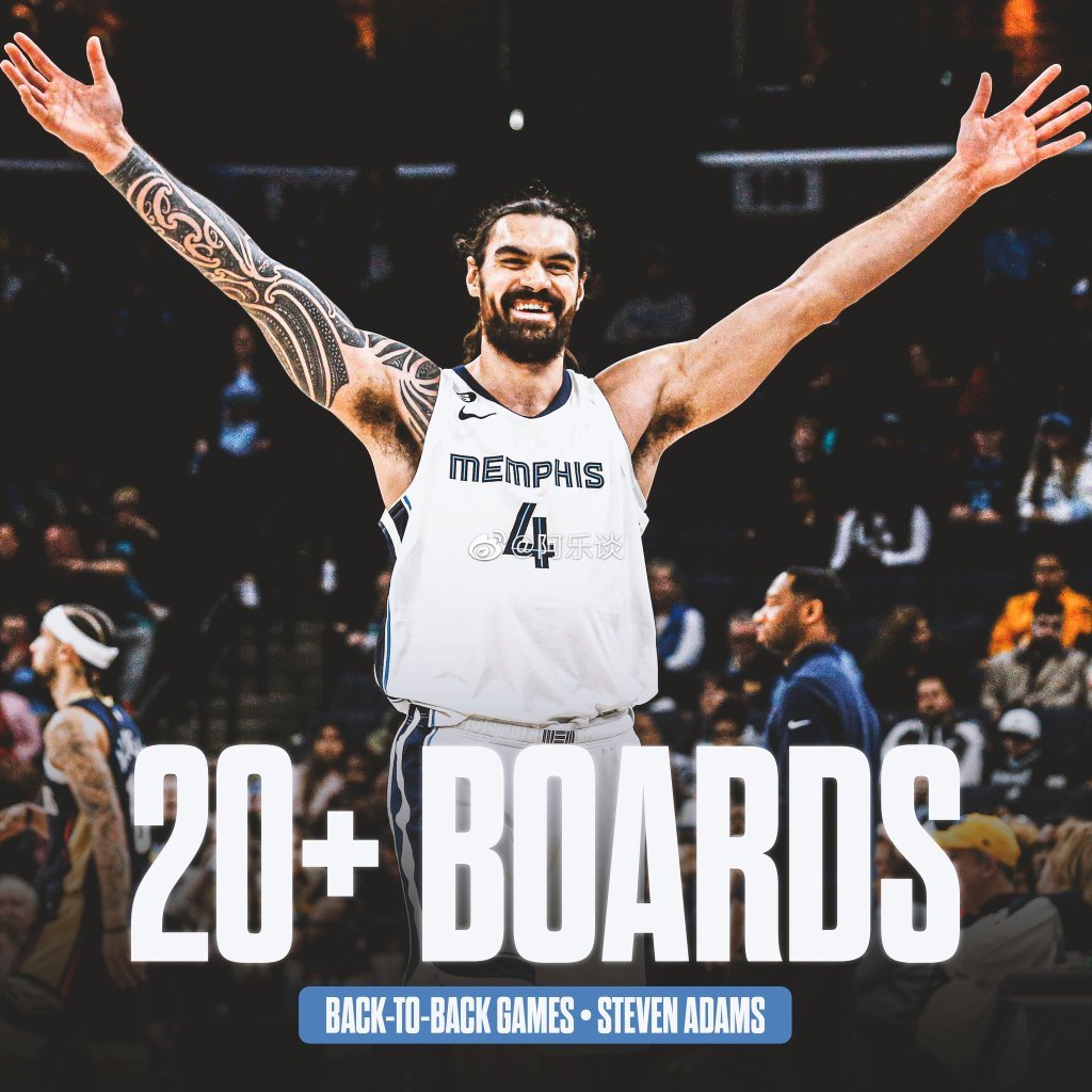 除了莫兰特,亚当斯今天表现也非常突出,出战34分钟,投篮12中5,得到11分23篮板3助攻的另类数据,其中有13个篮板都是前场篮板。在上一场对阵鹈鹕的比赛中,亚当斯也抢下了21个篮板。亚当斯连续两场比赛抢下至少20个篮板,也成为灰熊队史上首人。在之前对阵猛龙的比赛中,亚当斯也拿到了17个篮板。过去3场比赛,亚当斯一共拿到61个篮板,场均超过20个,是灰熊取得3连胜的重要功臣。