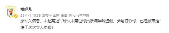 在李璇爆料有球员被抓后,博主“橙咝儿”透露,这个球员是来自中超某冠军球队,他被抓的原因是涉嫌年龄造假以及打假球。该博主并没透露具体的俱乐部和球员,只是说是冠军球队,他是谁?引发球迷猜测!
