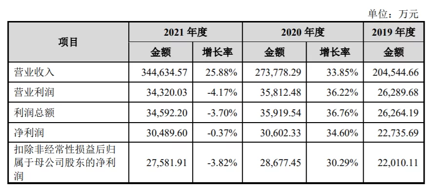 招股书显示,2019-2021年绿联科技营收分别为20.45亿元、27.38亿元和34.46亿元,年均复合增速达29.80%;但尴尬的是,同期净利润分别为2.27亿元、3.06亿元和3.04亿元,净利润增速从2020年的34.60%下降为-0.37%,陷入负增长。