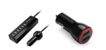 便携式设备可连接到汽车的点烟器插座,其中包含一个或多个 USB 连接器,便于您为手机或平板电脑充电。