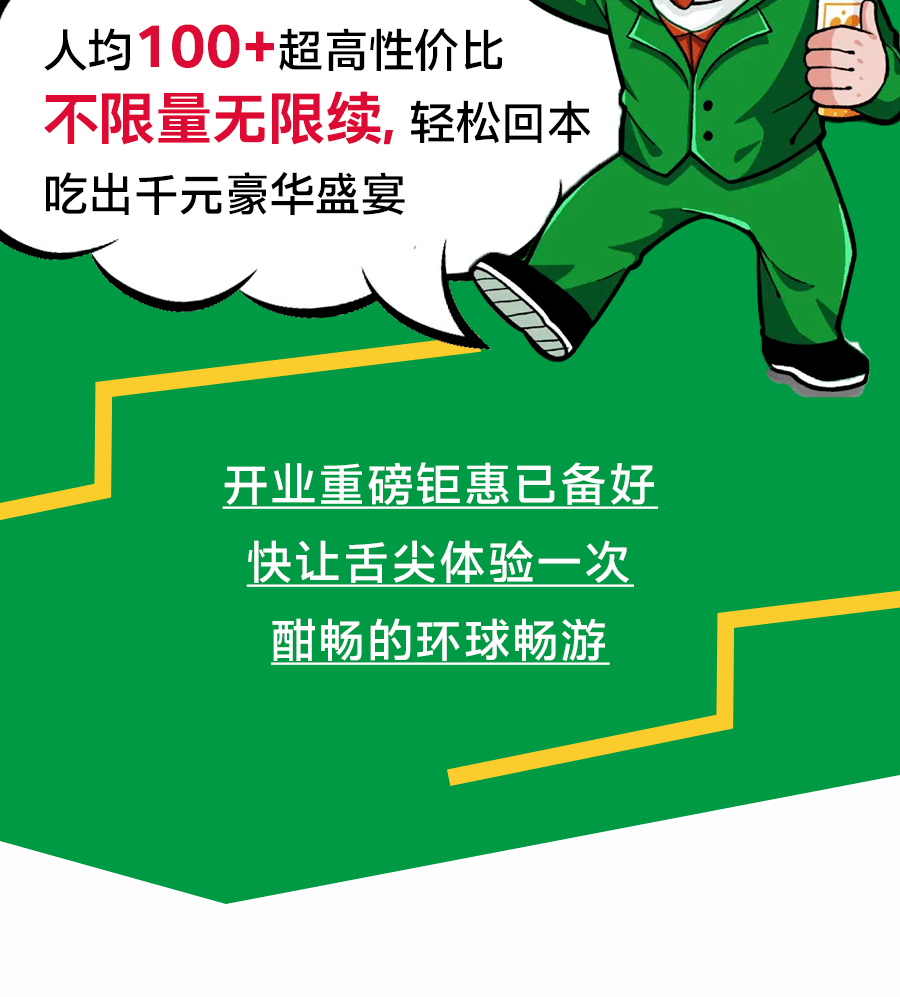 店内不仅汇聚了世界各地的特色美食,而且味道也是一绝, 人均100+就能无限畅吃,几乎每一家门店天天满场夜夜排队, 累计接待1.8亿+人次,在各大平台上更是收割了超多忠实粉丝!