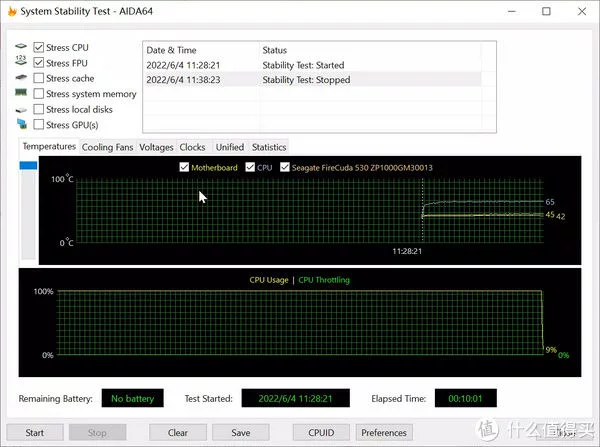 使用AIDA64进行双烤测试,满载运行十分钟设备运行稳定,根据网上的作业来看这条金百达DDR4 2666极限能够超到3666MHz,3400左右能够稳定运行,这不得不说真香了。