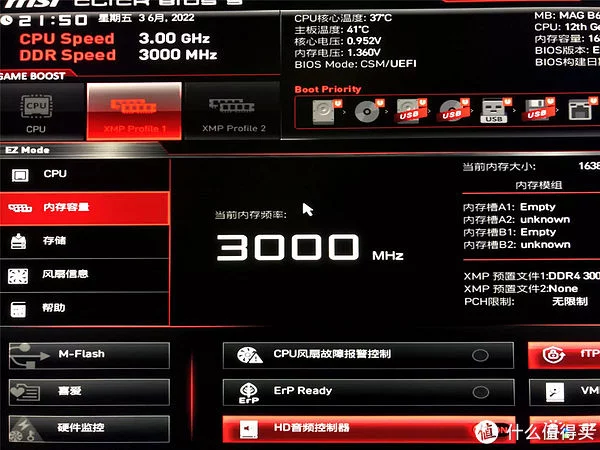 虽然在京东的商品详情页面没有介绍,但是实测在在主板的BIOS中设置XMP可以“一键”超到3000MHz,甚至还能继续往上超,这着实令人惊喜。
