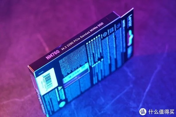 NM760正面由一张专用贴纸覆盖整个固态硬盘,简洁明了。