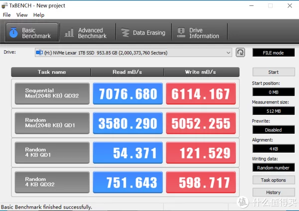 经过HD TUNE的文件基准测试,将写入样本设定为100G,NM760的读写速度都没有变化,SLC Cache空间应该是足够大了,无须担心。
