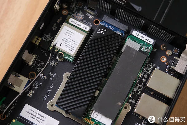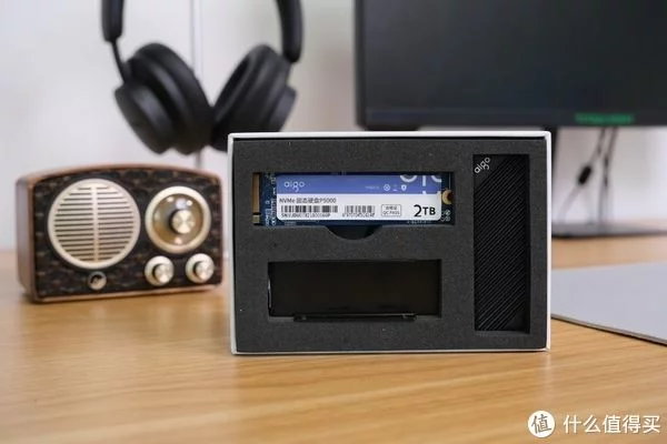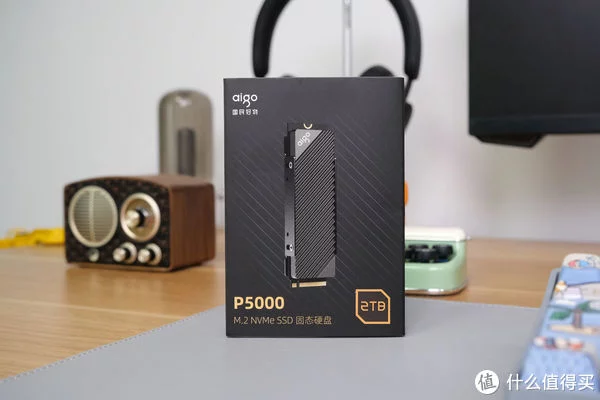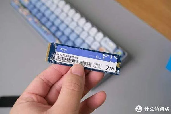 1TB、2TB,不管什么容量版本都有散热片、底座和散热贴的设计。另外,aigo P5000固态硬盘的顶部是有一圈蓝色标记印刻logo,其余的就和其他固态硬盘没有太大差异。