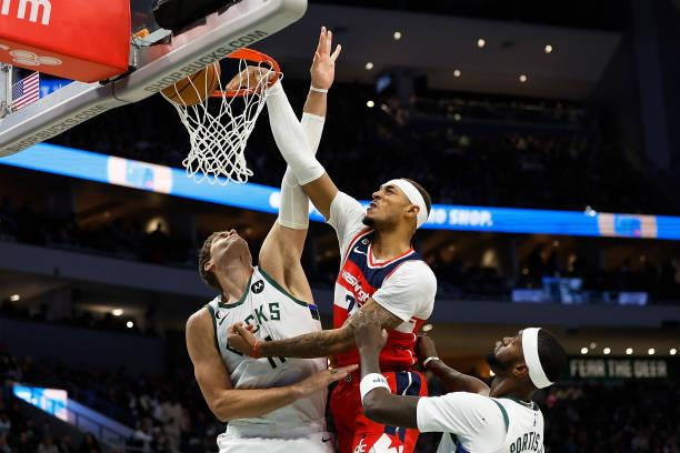 在今日的一场NBA常规赛中,华盛顿奇才以118比95完爆了主场作战的密尔沃基雄鹿。本场比赛后,豪取5连胜的奇才的战绩提升到了17胜21负,排名也上升到了东部第10位;而最近6场比赛中输掉5场的雄鹿的战绩则是下滑到了23胜13负,继续排名东部第3位。