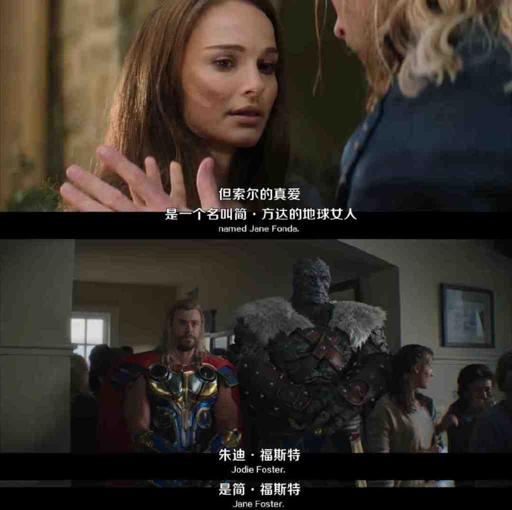 《雷神4》石头人拿索尔女友简·福斯特名字开涮,此类戏谑、调侃多与主情节无关。