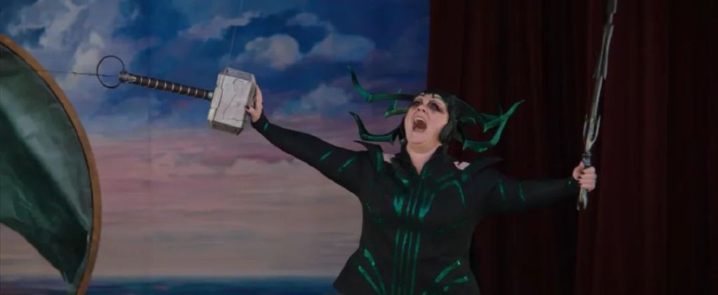 洛基、浩克、女武神插科打诨,伴随齐柏林飞艇的摇滚乐,消解了国破家亡的悲壮主题。