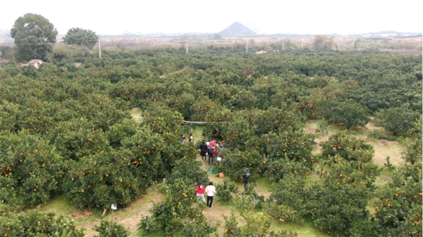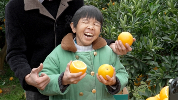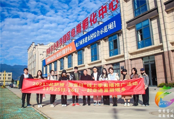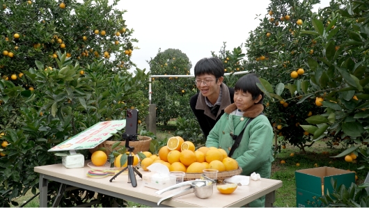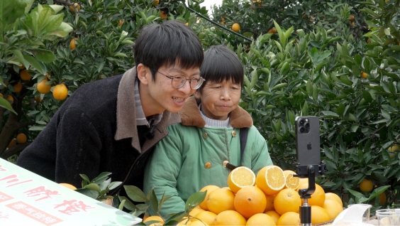 在富阳镇大头岩村脐橙种植基地,“康仔农人”通过直播向全国网民推介富川脐橙,通过“直播+助农”模式,助推富川脐橙产业发展。