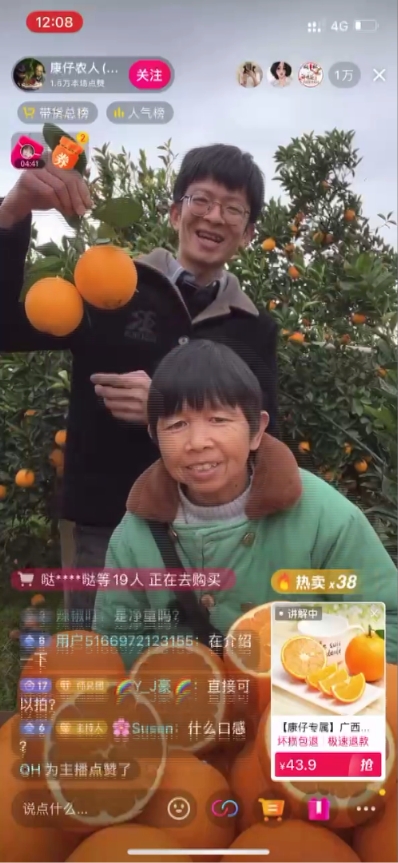 12月20日,抖音千万粉丝主播“康仔农人”到我县开展助农直播,几分钟的时间,就来了十几万的粉丝,“富川脐橙汁水多,很甜、很好吃!得到粉丝的各类好评,感谢大家的支持”。