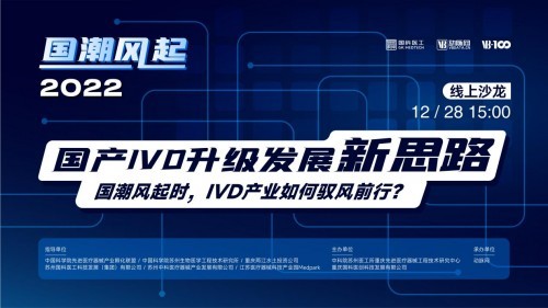 12月28日,由中国科学院先进医疗器械产业孵化联盟、中国科学院苏州生物医学工程技术研究所、重庆两江水土投资公司、苏州国科医工科技发展(集团)有限公司、苏州中科医疗器械产业发展有限公司、江苏医疗器械科技产业园Medpark指导,中科院苏州医工所重庆先进医疗器械工程技术研发中心、重庆国科医创科技发展有限公司主办,动脉网承办的“国潮风起 2022国产IVD升级发展新思路”线上沙龙成功举办。来自政、临、研、学、投五大领域的嘉宾们在活动中倾情分享他们对我国IVD行业的升级发展、临床挑战、科研生态、研发创新以及未来趋势的独特见解与前瞻思考。