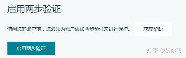 最后,还需要对注册的账户启用两步验证来进行保护,点击下图中的“启用两步验证”开始进行验证。注意:如果两步验证的页面无法打开,请清空浏览器的Cookie后刷新。还是打不开的话可更换浏览器尝试。