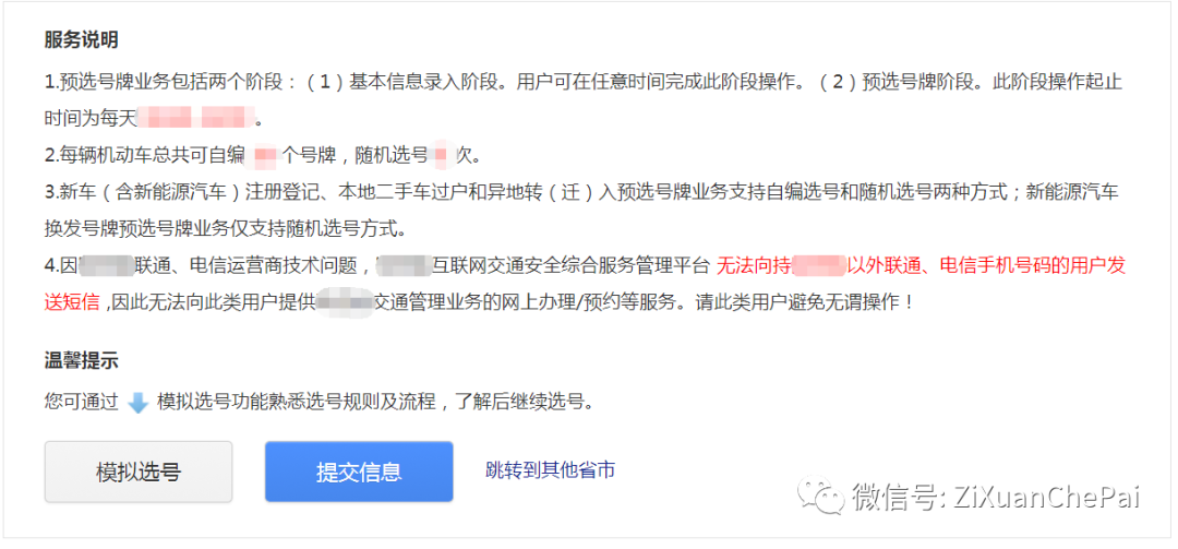 (1)请用户务必认真阅读业务须知,知晓预选号牌号码有效期、信息录入要求以及其他内容。