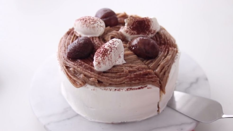 9. 糖渍板栗一般超市都有卖,直接放在蛋糕上即可