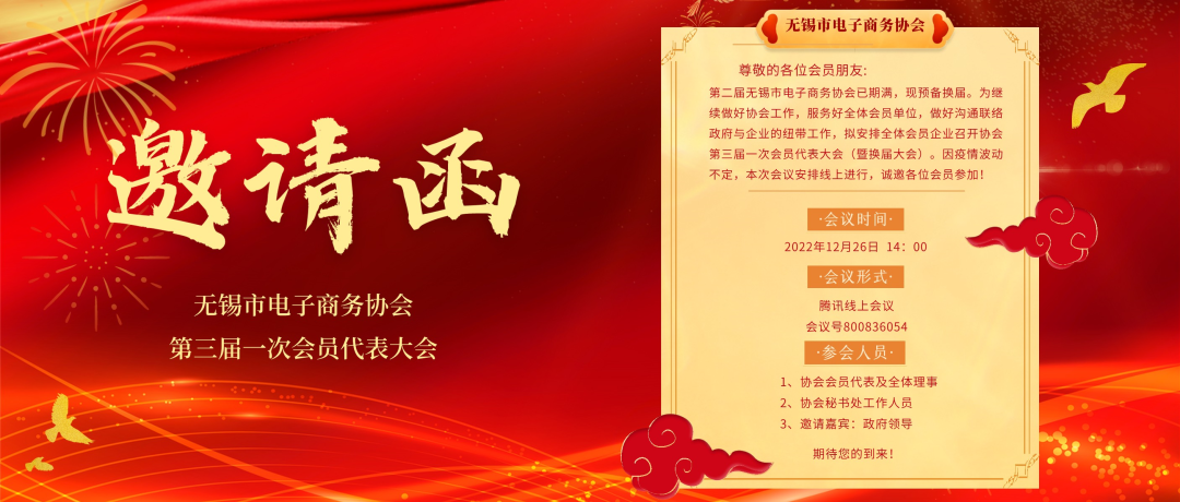 十二月,阳光正好,是收获的季节。无锡市电子商务协会自2012年成立,在无锡市商务局、无锡市民政局、无锡市工商联及有关部门的关怀和指导下,在各位理事和会员单位的共同努力下得到快速成长,这十年来,我们收获了成功、喜悦、友谊,获得了机会、成长与信任,如今又迎来了第三届一次会员代表大会暨换届大会的顺利召开。由于疫情原因,本次会议在线上举行。会议邀请了无锡市商务局副局长蒋波、无锡市商务局调研员欧国君和无锡本地各大高校领导和各位企业家共计137位在线参与。根据公平公正公开原则,会议采用在线民主投票形式,选举出新一届协会领导班子。名单如下(排名不分先后):