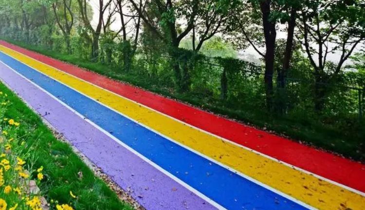 彩虹步道, 彩虹步道是莫干山最近两年最火的打卡点,地点有些偏,直接导航到四合村西湖顶生态茶场就可以找到。一道彩虹落在莫干山镇四合村西湖顶,赤橙黄绿青蓝紫,蜿蜒缠绕在山间给单调的山色添了几许靓丽,吸引了大批游客前来登山远眺。