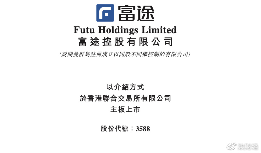 近日,富途控股有限公司(下称“富途控股”)发布通告称,将以介绍方式于香港联交所主板上市,股票代码为03588.HK,预计A类普通股于12月30日挂牌买卖。