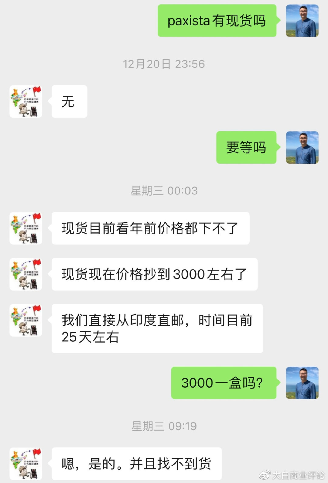 12月15日,“印度新冠仿制药被卖到一盒上千元”登上微博热搜,顶着“药神”光环,印度仿制药一度被传为救世神药,人们通过各种渠道抢购这个售价更低、无需处方的“平替”版本。这两款药在11月中旬,还能以700元一盒的价格从代购手里买到。不过,大白最近问代购,已经涨到3000元一盒,而且还不保证一定有货。
