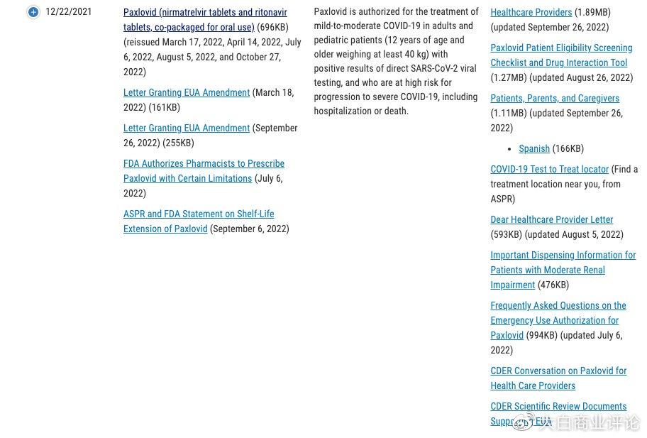 (图为美国食品药品管理局网站2022年10月27日回复Paxlovid的紧急使用授权书)