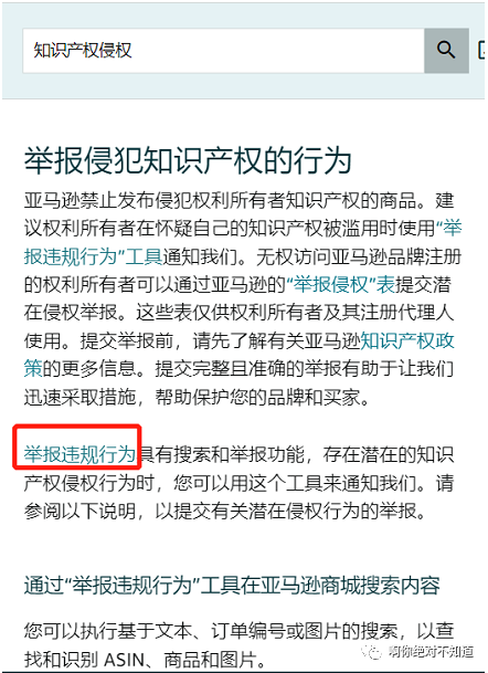 内容仅代表作者独立观点,不代表赢商荟立场。亚马逊是个尊重知识产权的平台,如果一旦发现有人在没有得到授权的情况下跟卖你的产品,盗图,盗用商标,请马上采取行动,及时维护自己的权益。当然,投诉是个技术活,没有好的投诉技巧,往往只会被亚马逊无情拒绝。要想成功的投诉,需要做好以下几点:销售之初注册品牌并备案,提供商标注册号。把自己的品牌logo包装、产品上的品牌logo细节图上传到图片上,证明品牌已投入使用。给侵权卖家发警告信(假如不是恶意跟卖,跟卖者很可能会自行下架产品,可有效解决70%左右的跟卖问题)若交涉过程不顺利,可页面截图留下证据,以便后续投诉。STEP 1:在卖家后台的万能搜索框搜索“知识产权侵权”点击“举报侵犯知识产权的行为”。