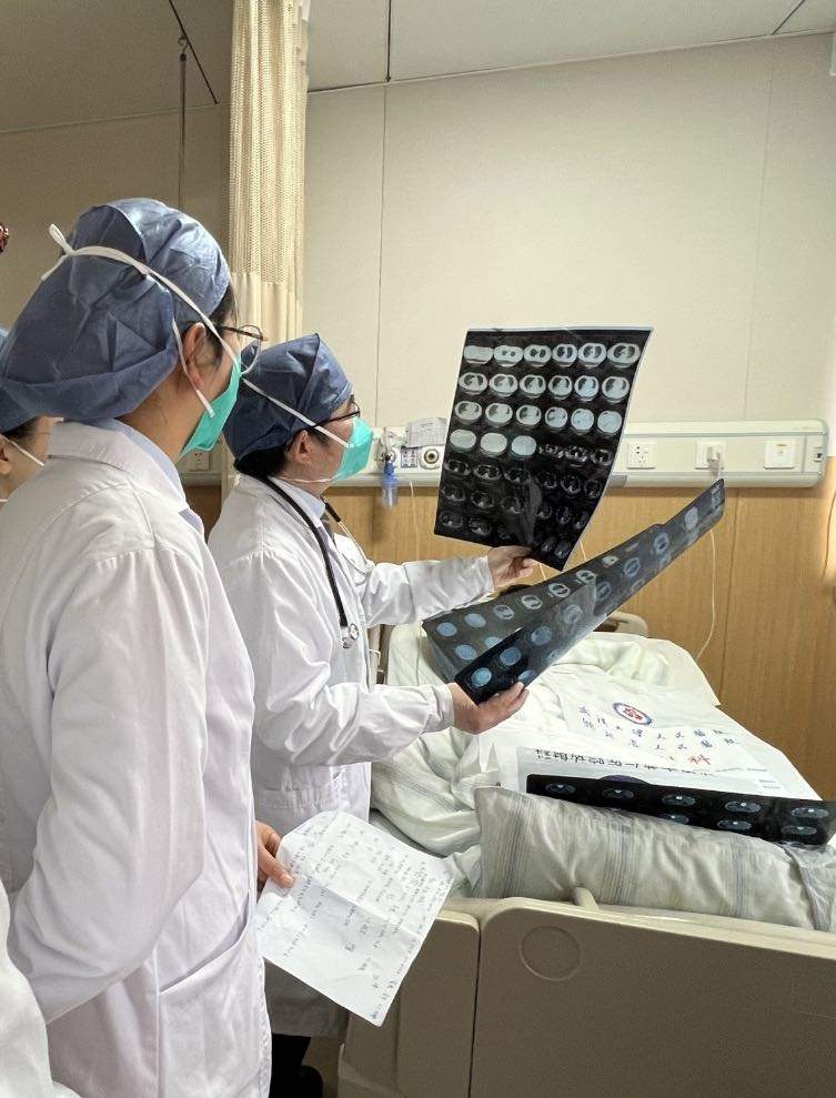 呼吸与危重症医学科二病区主任程德忠正在查看病人的ct片。通讯员詹文雪 摄