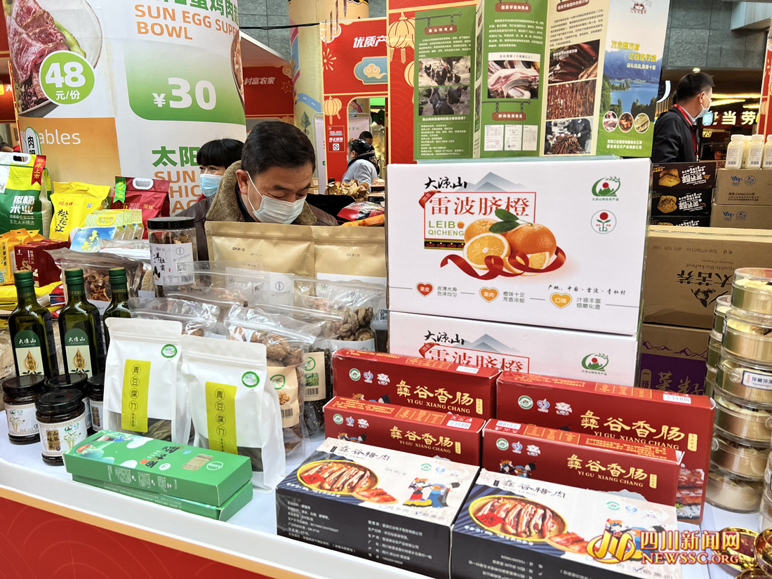这是四川联沁农业集团有限公司首次参与年货大集活动,在“农特产品生产企业+电商产品打造包装+产品线上线下销售+物流配送”营销新路径下,田间地头里的特色产品走向年货大集的舞台,成为游客争相购买的“香饽饽”。