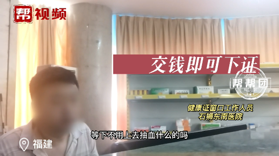 办理健康证需要经抽血、检验、审核、发证,环环相扣,但如果连体检都没有就能办下证件,说明其中存在的监管盲区可能还不是一两个。